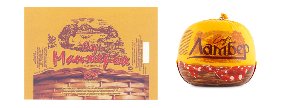 Так, Суд по интеллектуальным правам в решении от 16.08.2019 по делу №СИП-585/2018 сравнил промышленный образец «Этикетка» и товарный знак для сыра Ламбер на предмет сходства и сделал следующие выводы: