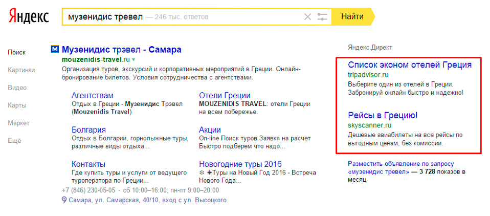 Еще одной из разновидностей нарушения прав на товарные знаки в интернете является использование брендового запроса для рекламы своих продуктов и услуг конкурирующими компаниями в качестве ключевых слов. Например, ваша туристическая компания – известный туроператор, организующий туры в Грецию. Конкуренты запустили контекстную рекламу по вашей торговой марке, используя в качестве ключевых фраз зарегистрированный торговый знак. Реклама конкурентов демонстрируется всем пользователям, которые ищут сайт вашей компании. Часть пользователей может перейти по рекламным объявлениям на сайт конкурента и, не обратив внимание на заголовок сайта, заказать товары или услуги у них.