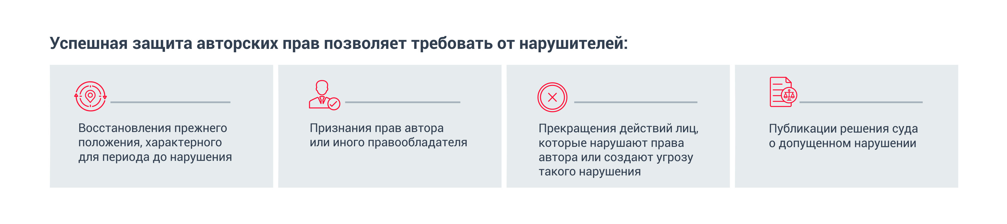 - прекращения действий лиц, которые нарушают права автора или создают угрозу такого нарушения