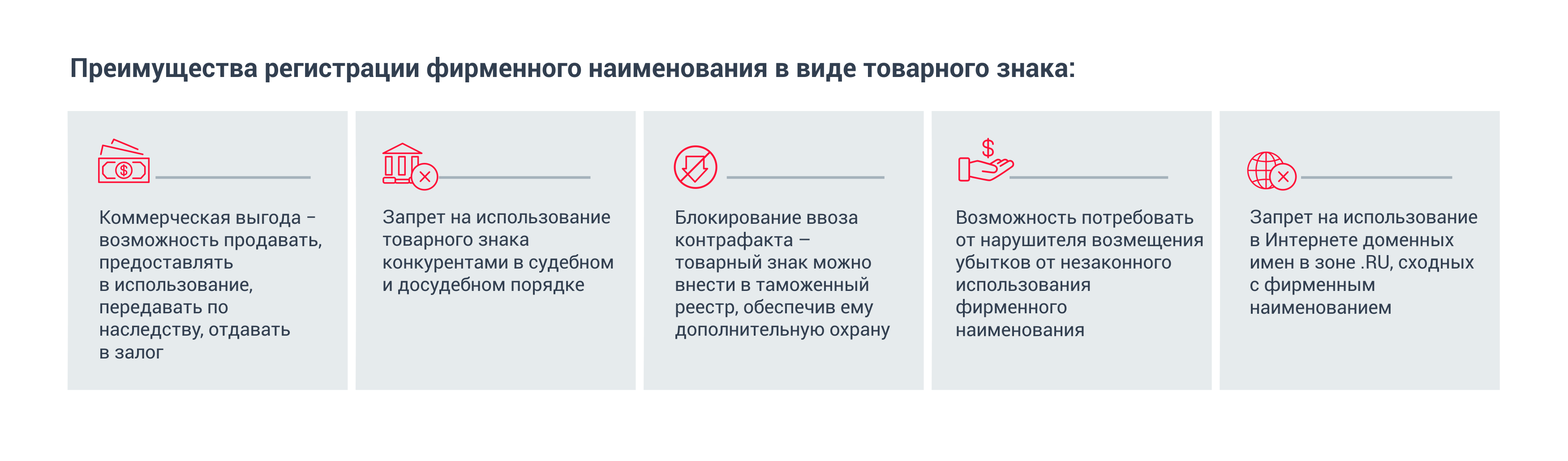 Для повышения правовой защиты фирменного наименования юридического лица необходимо зарегистрировать название компании в качестве товарного знака.
