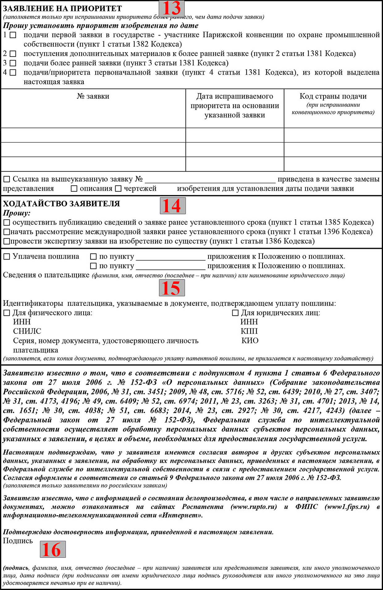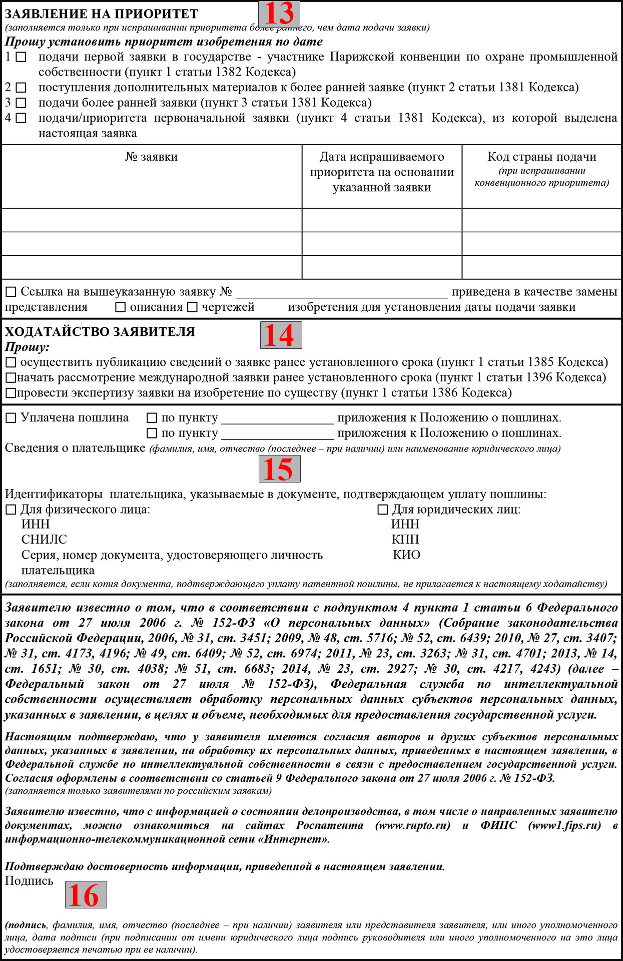 Итак, мы перешли к третьему листу. Он начинается с графы «Заявление на приоритет» (13).
