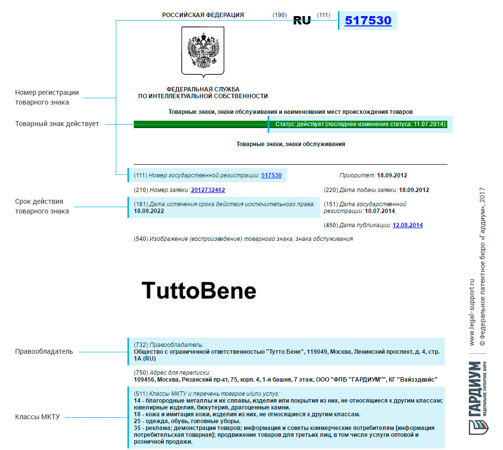 Убедитесь в том, что по искомому номеру находится именно нужный товарный знак. Проверьте, действительна ли на данный момент регистрация товарного знака и кто является правообладателем.