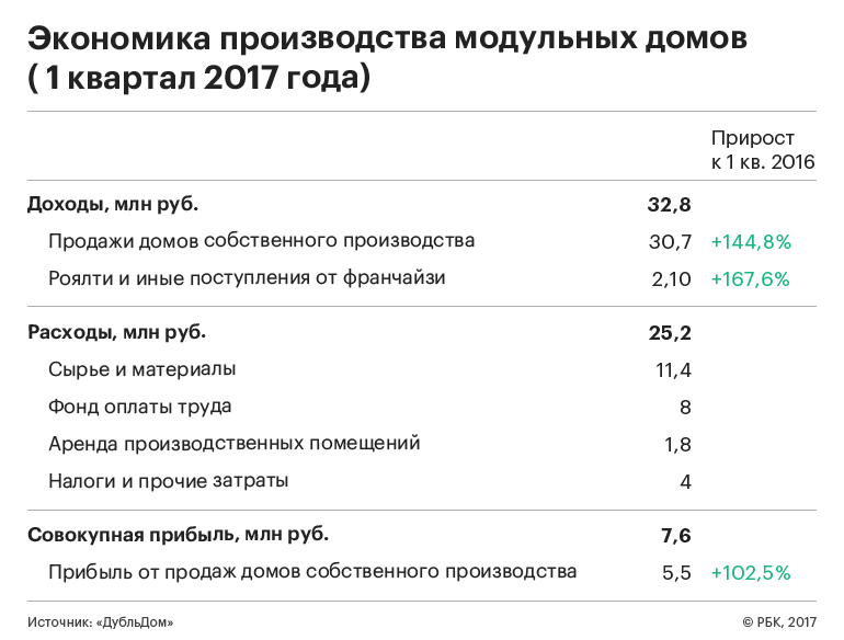 Себестоимость модульного домостроения снижается по мере роста объемов производства. «Первый дом на продажу стоил $30 тыс. Это был малюсенький, без веранд и дополнительных аксессуаров домик. Сейчас за $25 тыс. мы делаем полноценный дом площадью 43 кв. м с большой гостиной, печкой, хорошими материалами и верандой», — говорит Овчинников.