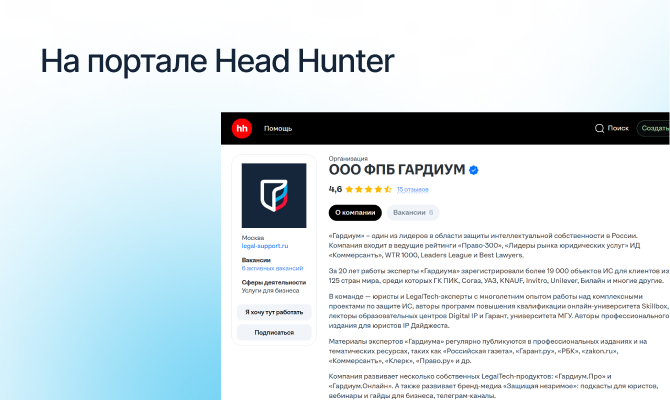 В команде «Гардиум» — судебные адвокаты, патентные поверенные, инженеры, Legal Tech эксперты, юристы-методологи.